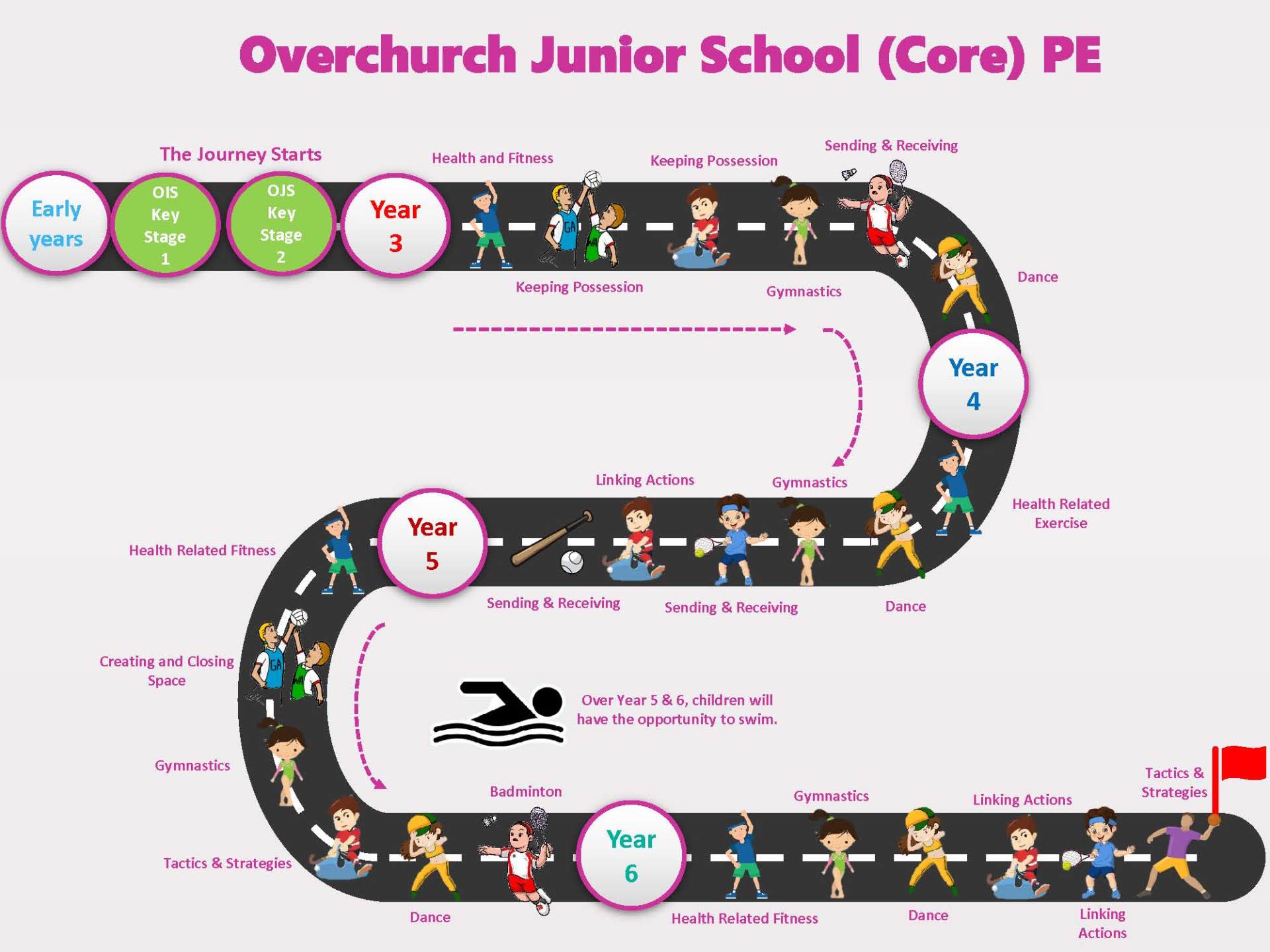 When pupils leave Overchurch Juniors, we want them to be confident in their ability to fully engage in a wider range of opportunities and demonstrate resilience in the face of challenges, both in PE and Sport and other areas of the school. Our pupils will develop good social skills, including effective communication, through the tailored curriculum which supports them to have a positive attitude towards being active and encourages good decisions relating to leading a healthy active lifestyle.